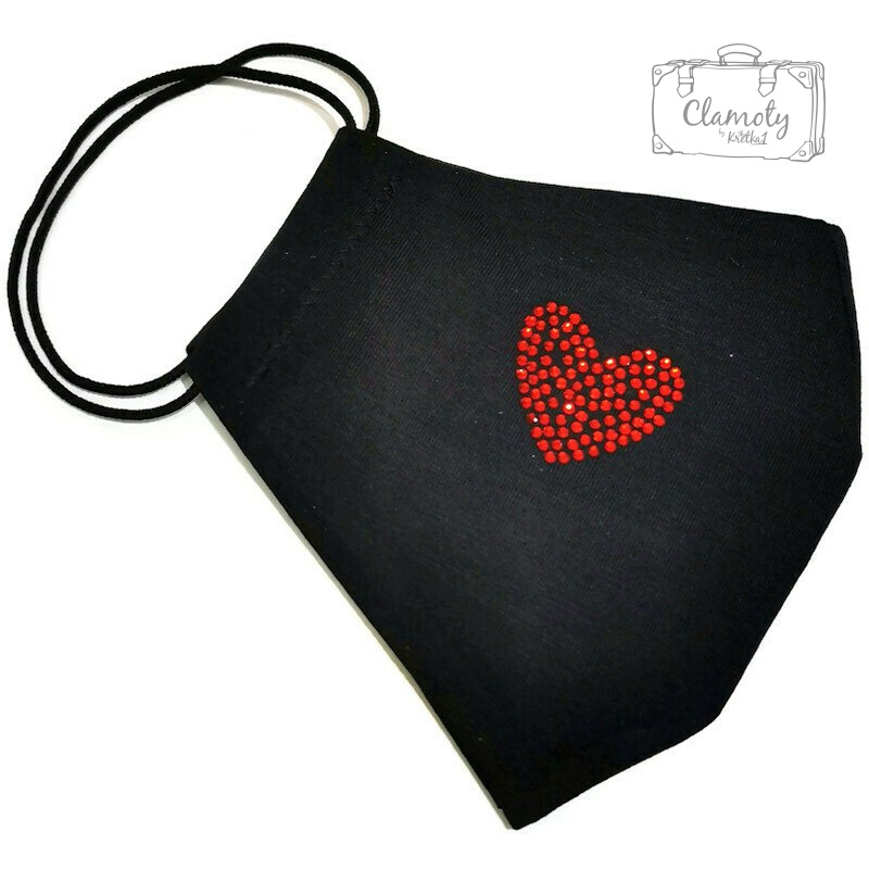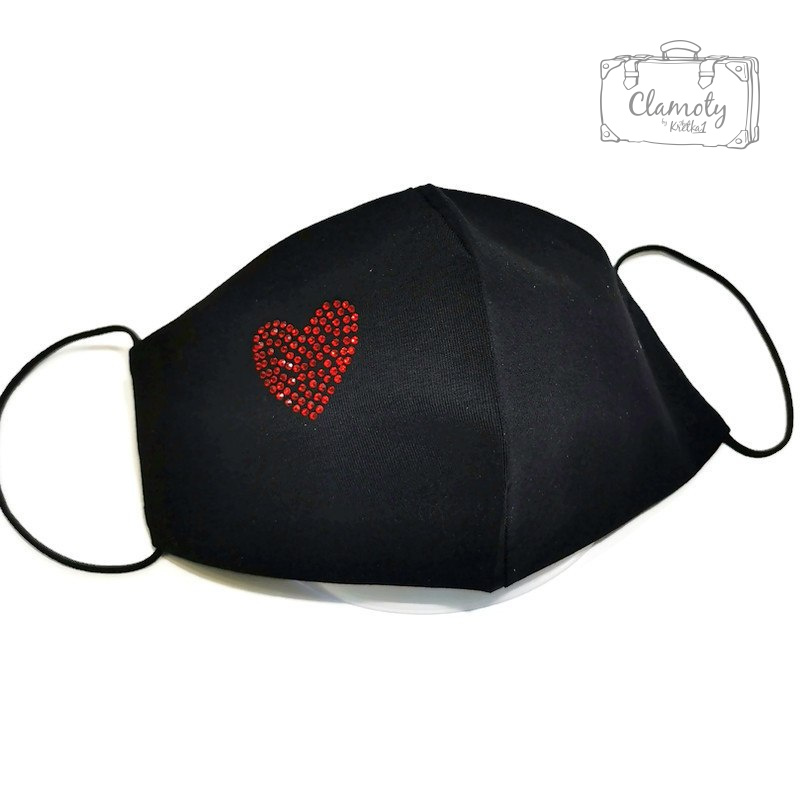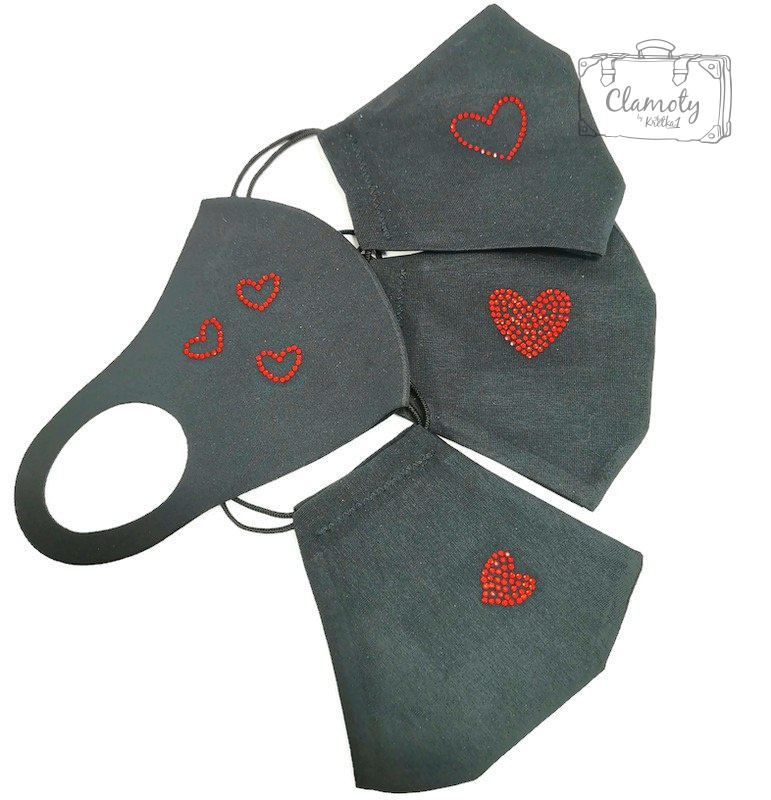 MASKA OCHRONNA BAWEŁNIANA, NIE TYLKO NA WALENTYNKI, CZERWONE SERCE PEŁNE