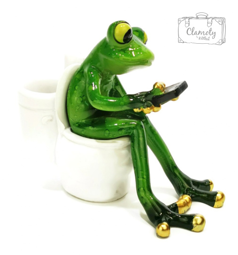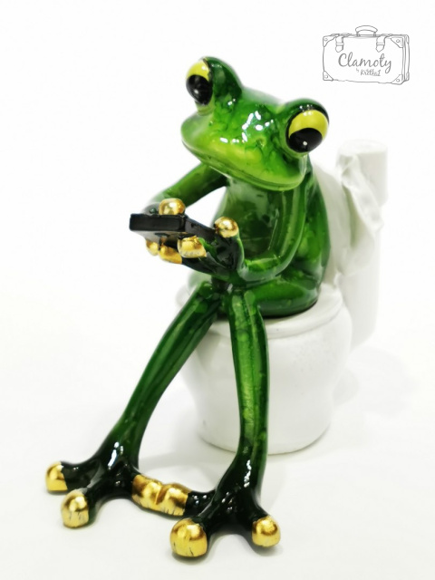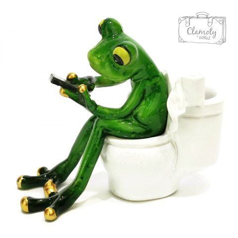 FIGURKA DEKORACYJNA ZIELONA ŻABA CHUDY W TOALECIE