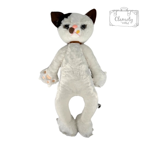 Maskotka Pluszowa Pluszak Zabawka Biały Kot Czarne Uszko 40 cm