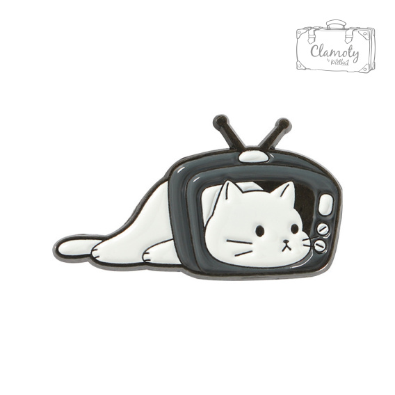 Metalowa Przypinka Kot Z Głową W TV Idealny pomysł na prezent