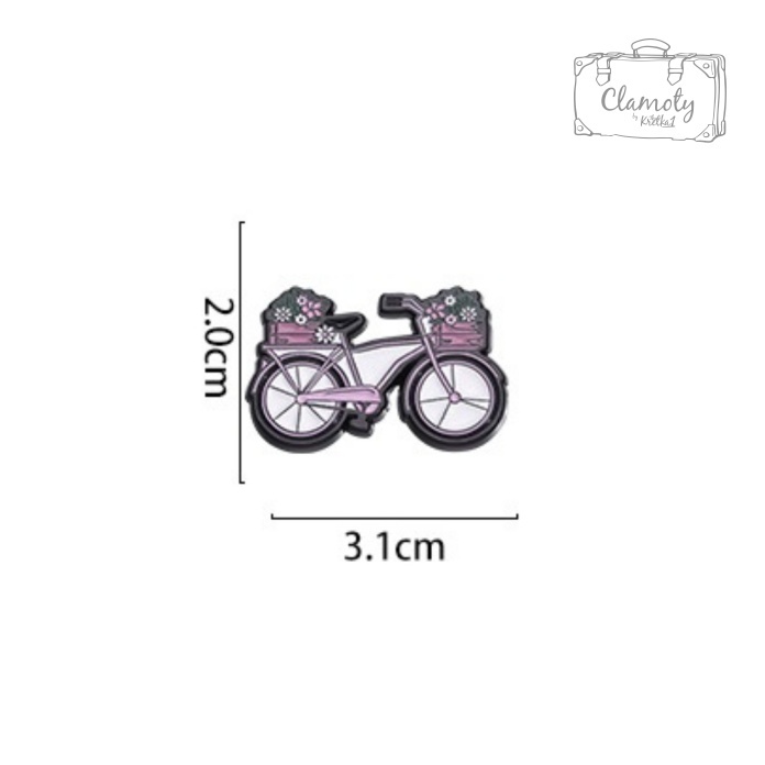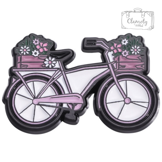 Metalowa Przypinka Różowy Rower Z Koszem Kwiatów Pin