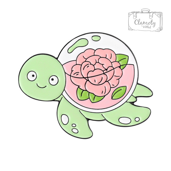 Emaliowana Metalowa Przypinka Żółw Żółwik Z Kwiatkiem Flower, modna ozdoba do ubrań