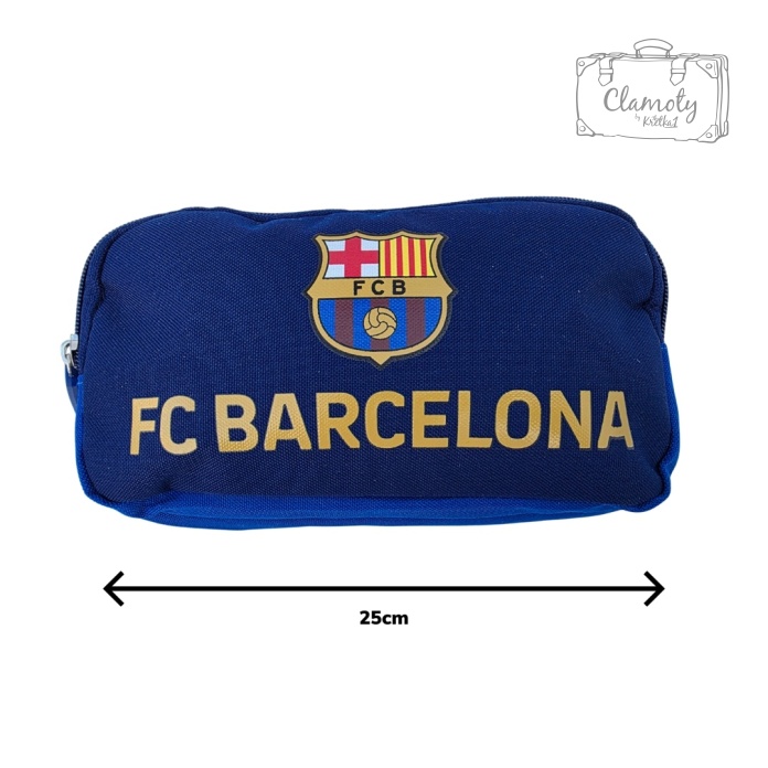 Piórnik szkolny FC Barcelona w niebieskim kolorze z oficjalnym herbem klubu. Posiada dwie duże przegrody na suwak, idealne do przechowywania przyborów szkolnych. Wymiary 25 × 15 cm – praktyczny wybór dla ucznia i fana Barçy.