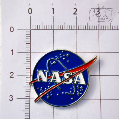 PRZYPINKA NASA BIAŁY NAPIS NA GRANATOWYM TLE BUTON METAL PIN 1