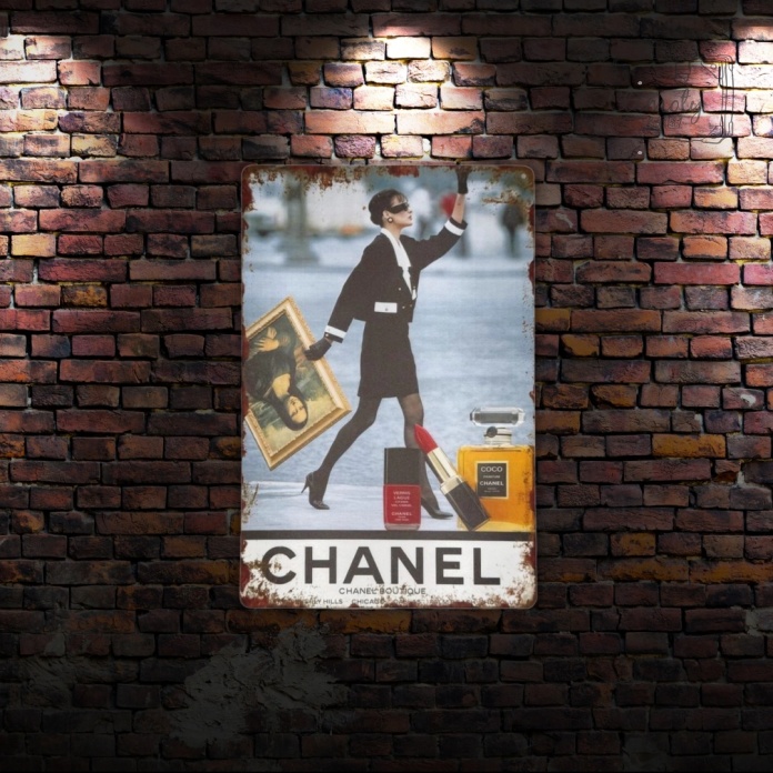 Tablica ozdobna z motywem *Plakat Modowy Perfumy* to stylowa dekoracja dla miłośników elegancji i świata mody. Wykonana z solidnej blachy o wymiarach 20x30 cm, w estetyce retro, doda wnętrzu luksusowego i artystycznego charakteru.