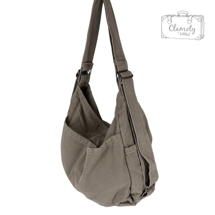 Torebko Plecak Damski Ciemny Beż Na Suwak Długe Ramie Drelich Krókie Ramię