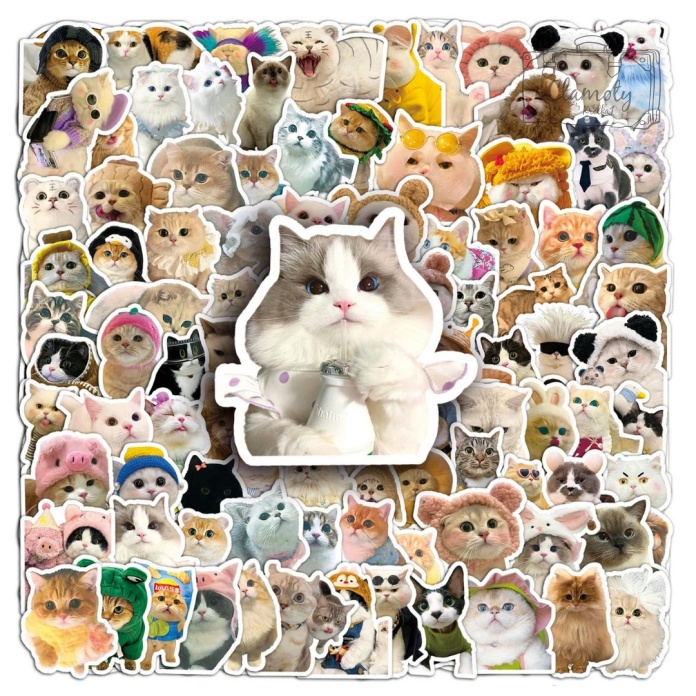 🛼 Zestaw Naklejek Wlepki StickerBomb Słodkie Koty Ubrankach N671