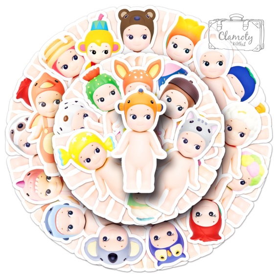 Zestaw 50 naklejek StickerBomb Sonny Angel Lalka Mini Dreams N664 wykonanych z trwałego, wodoodpornego PVC. Pastelowe, urocze i kolekcjonerskie – idealne dla fanów kawaii i laleczek Sonny Angel! 👼