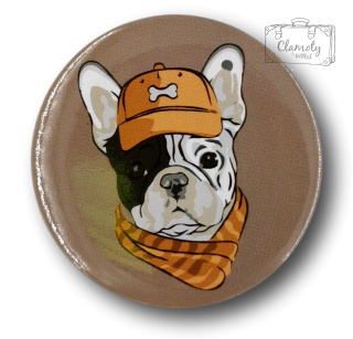 Przypinka Metalowa Okrągła Mops W Czapce Metal Pin
