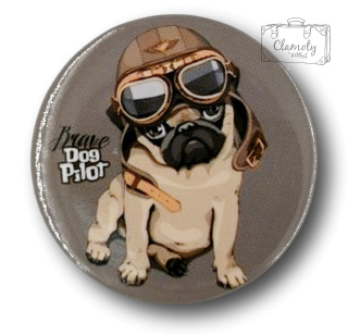 Przypinka Metalowa Okrągła Mops Dog Pilot Metal Pin