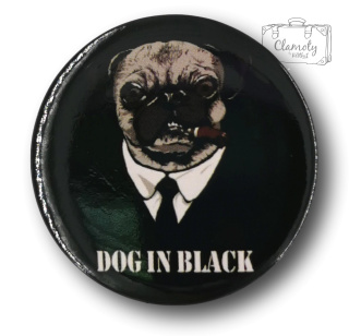 Przypinka Okrągła Mops Dog In Black Metal Pin