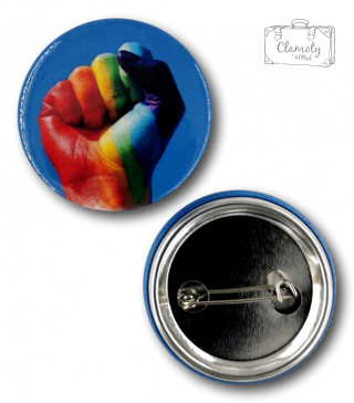 Przypinka Metalowa Okrągła Tęcza Pięść Pin