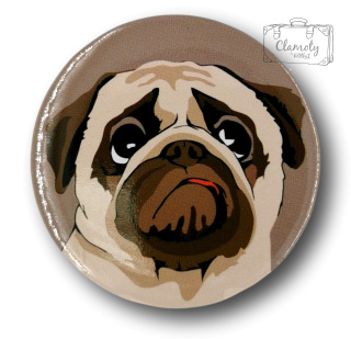 Przypinka Metalowa Metalowa Okrągła Mops Metal Pin